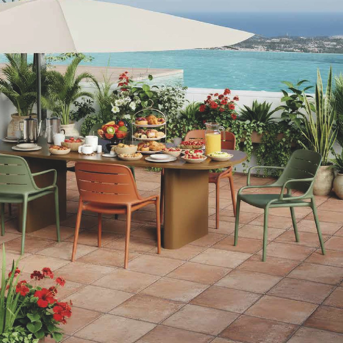 Ideal para terrazas, jardines, poolside areas, restaurantes costeros, cafés al aire libre o espacios residenciales modernos, la Breeze es perfecta para entornos donde el estilo y la funcionalidad se encuentran. Su construcción en polipropileno garantiza resistencia a los rayos UV, a la humedad y al desgaste, manteniendo su color vibrante y acabado impecable temporada tras temporada. Fácil de limpiar y apilar, es la solución práctica sin comprometer el diseño.