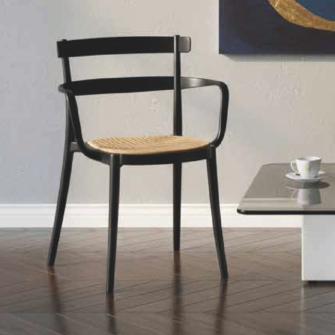 Perfecta para comedores modernos, cafés de autor, espacios boutique o áreas lounge, esta versión con brazos añade distinción y confort superior. Fabricada en polipropileno de alta resistencia, combina durabilidad con estilo atemporal y fácil mantenimiento.